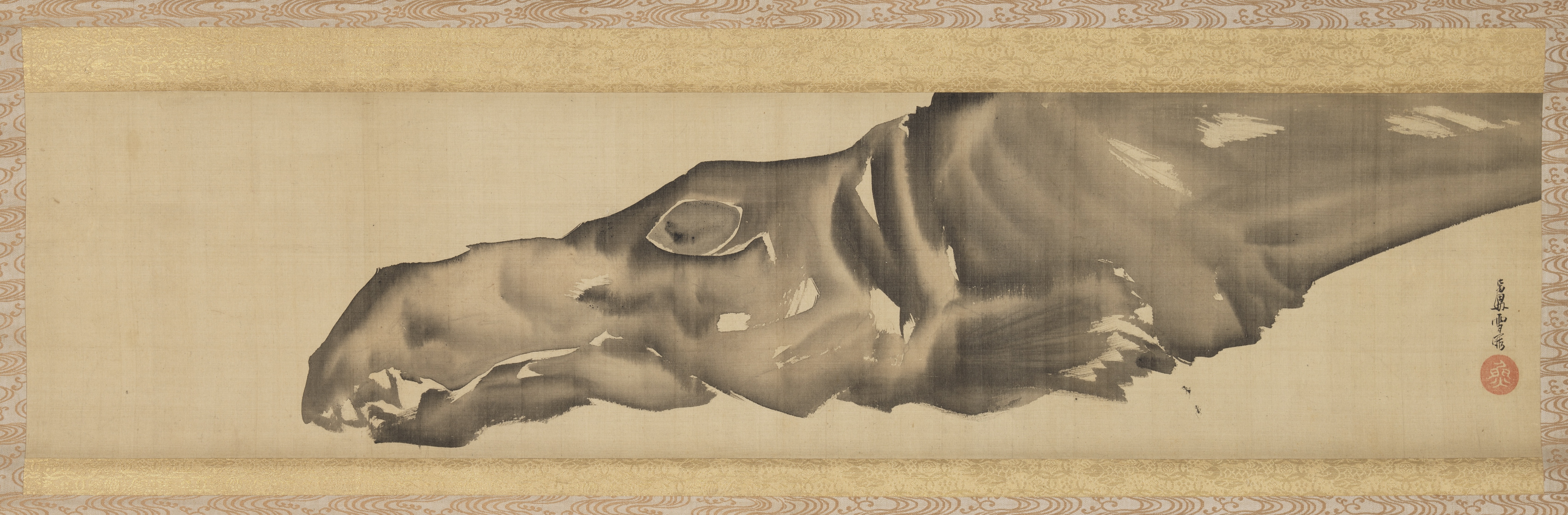 掛軸 絹本墨画 19.69 × 84.14 cm.