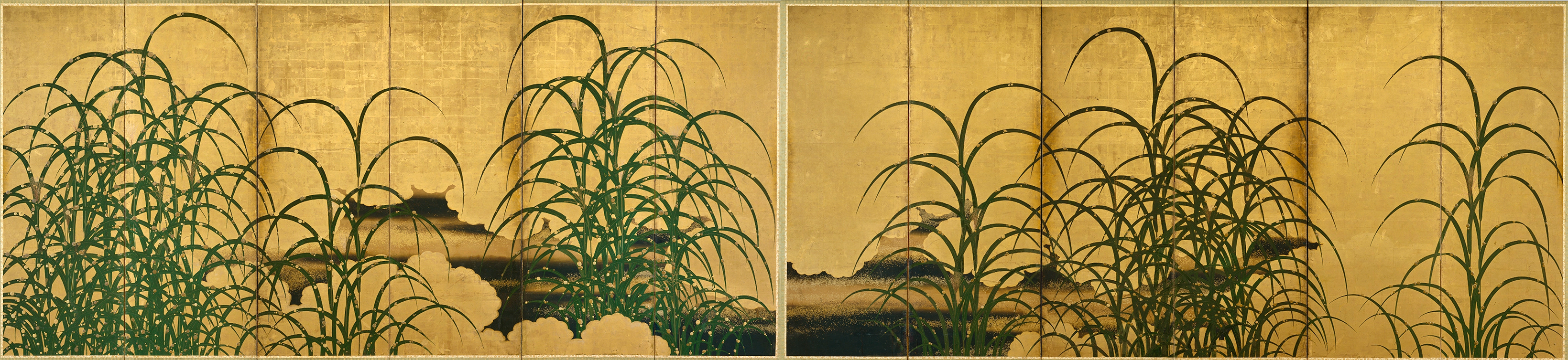 6曲1隻 紙本金地着色胡粉 181 cm × 3 m 79.4 cm.